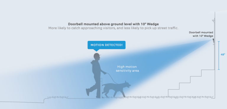 As shown in the animation, it’s essential to place your Ring Video Doorbell Pro so that the motion zone camera can “see” as much of the area as possible.