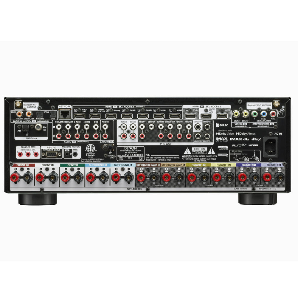 The powerful Denon AVR-X4800H drives 9.4 channels of amplification. With Dolby Atmos and DTS:X, plus IMAX Enhanced and Auro 3D, the AVR-X4800H envelops larger living spaces in breathtaking 3D audio. With HEOS® Built-in, wirelessly stream your favorite music.