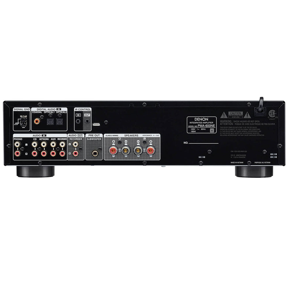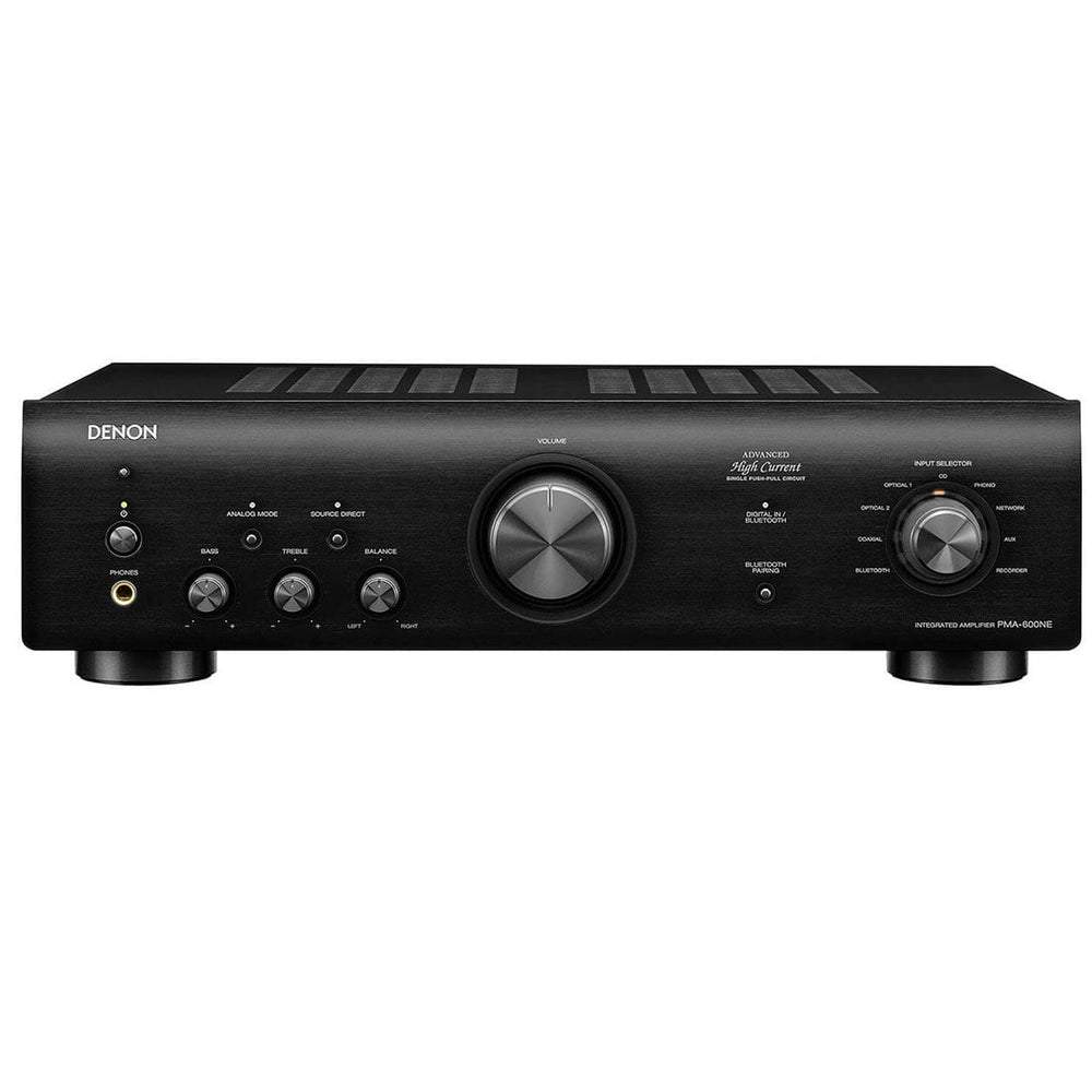 Designed for the aspiring music enthusiast, the Denon PMA-600NE is the superior choice for those who want to build their first 2-channel Hi-Fi system. The PMA-600NE allows for the most vivid and emotional reproduction of vinyl and hi-res audio with digital inputs and a built-in phono equalizer. Listen to your favorite music via Bluetooth as well for seamless streaming of nearly unlimited songs. From deep bass to detailed highs, enjoy your favorite high-resolution audio content with the 192kHz/24bit D/A converter. At 70 Watts (4ohm, 1kHz, THD: 0.7%) per channel, the PMA-600NE supplies enough power to drive your speakers for optimal sound. Connect the PMA-600NE to your favorite components with the two Optical and one Coaxial digital input. Powered by the Denon Advanced High Current (AHC) single-push-pull circuit power amplifier, the PMA-600NE provides exceptional sound quality that balances high power with delicate, musical details.