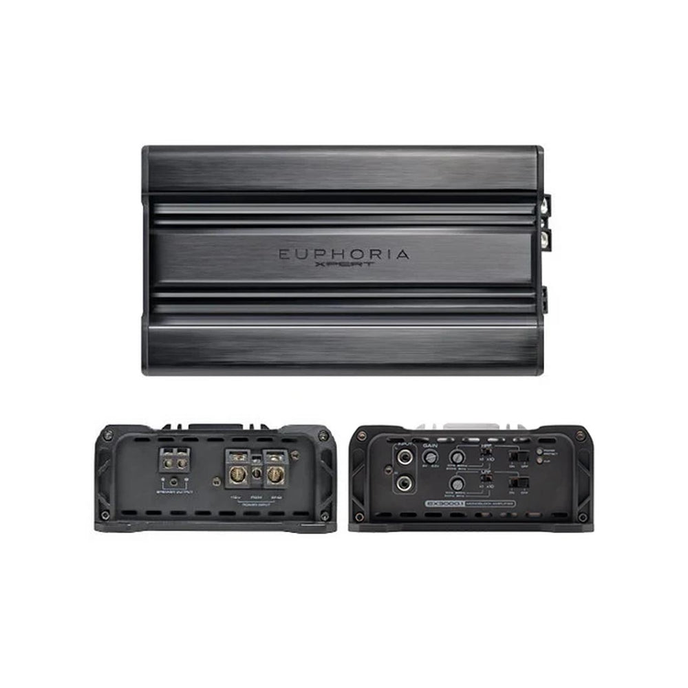 - What kind of speakers can I use with the Euphoria EX3000.1? The amplifier is versatile and can power high-performance compression drivers, midbass drivers, and subwoofers with ease.