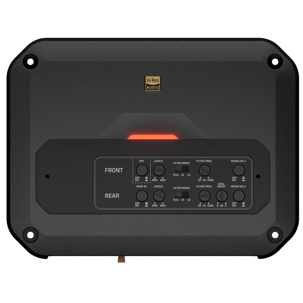Want to tweak your sound exactly how you like it? The CP 4.800 has you covered. You’ll find top-mounted controls for adjusting input levels, crossover filters (high, band, and low-pass), a subsonic filter, bass boost, and phase control. Everything is right where you need it—no need to unmount the amp to make a change.