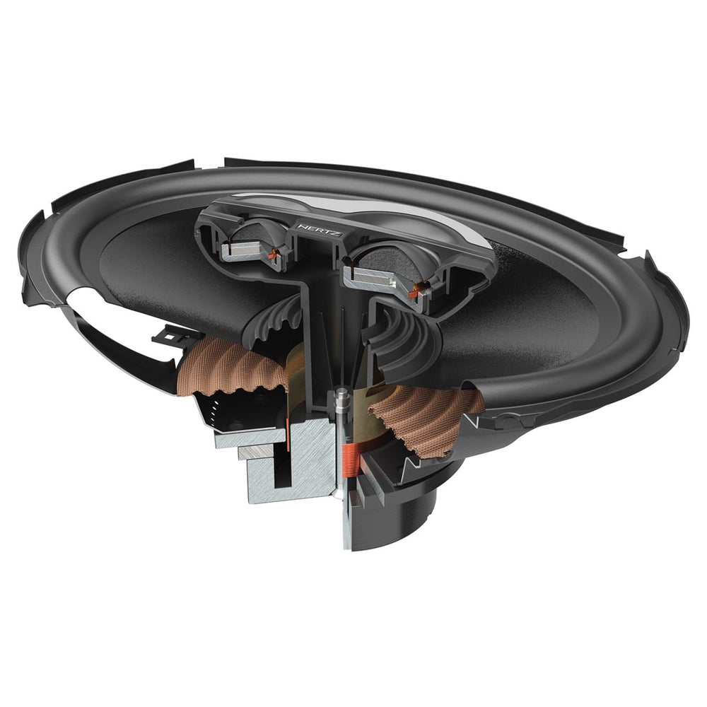Blowouts? Distortion? Not happening here. The Hertz SX690H features a double-layer copper voice coil wound on a polyimide former. This setup gives it a thermal edge—allowing the speakers to stay cool and consistent, even when you're cranking them for hours.