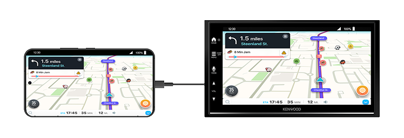 Apple CarPlay is a safer way to use your iPhone in the car. Simply talk to Siri or touch the receiver’s display to get directions from Apple Maps, make phone calls, listen to voicemail, send and receive texts, and listen to music from Apple Music or your favorite 3rd party streaming services like Pandora and Spotify, all in a way that allows you to stay focused on the road. With the latest iOS version (iOS 12.0 and higher), 3rd party navigation apps like Google Maps™ and Waze™ are also supported. KENWOOD Wi-Fi receivers now support Apple CarPlay wirelessly (compatible phone required).