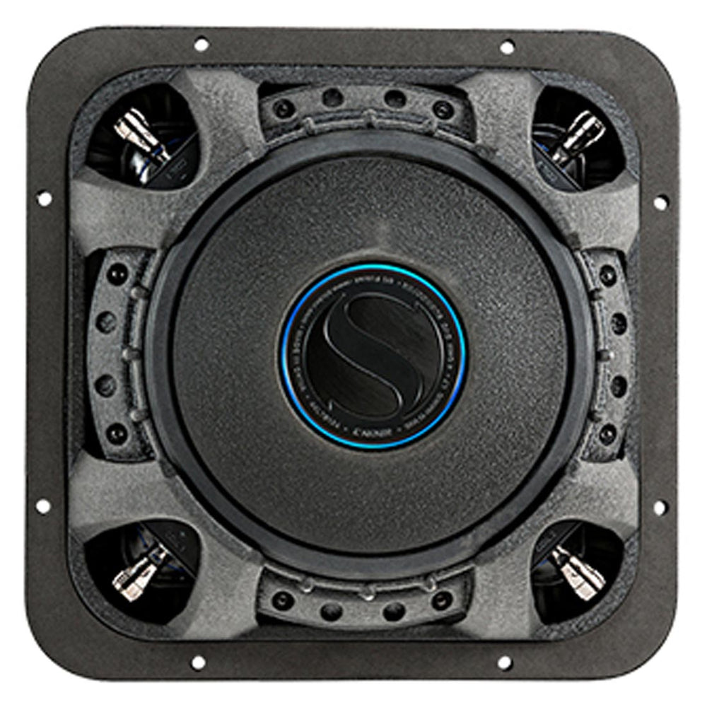 The Santoprene rubber surround plays a crucial role in controlling the excursion of the cone. It allows for precise and controlled cone movement, resulting in accurate and distortion-free bass reproduction. The surround is ribbed and features blue stitching, not only adding to the subwoofer's aesthetic appeal but also providing additional durability and strength.