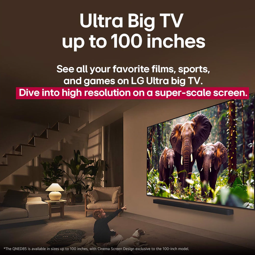 Designed with a sleek, super slim profile, the LG 55QNED85AUA QNED evo AI MiniLED 4K Smart TV enhances any living space while offering screen sizes up to 100 inches. With the webOS Re:New Program, you’ll receive annual software upgrades for five years, ensuring your TV stays secure and up to date. Recognized as a 2025 CES Innovation Awards Honoree in cybersecurity, this model combines cutting-edge visuals with trusted, future-proof performance.