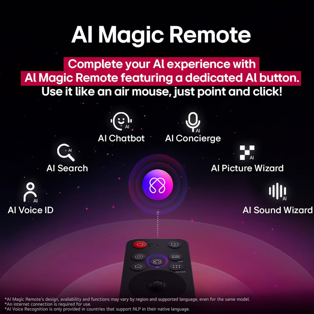 The LG QNED85 QNED evo AI MiniLED 4K Smart TV offers an all-encompassing smart experience powered by the AI Magic Remote. With features like AI Voice ID, AI Search, and AI Chatbot, you can interact with your TV using simple voice commands. Whether you need personalized content recommendations or instant troubleshooting, the AI-powered system ensures smooth, responsive control at all times.