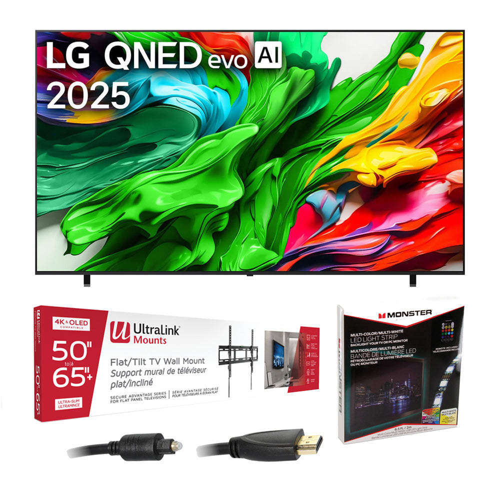 LG 55QNED85AUA 55" QNED evo AI MiniLED 4k Smart TV | Ultralink KIT3LED Home Entertainment Starter Kit Bundle