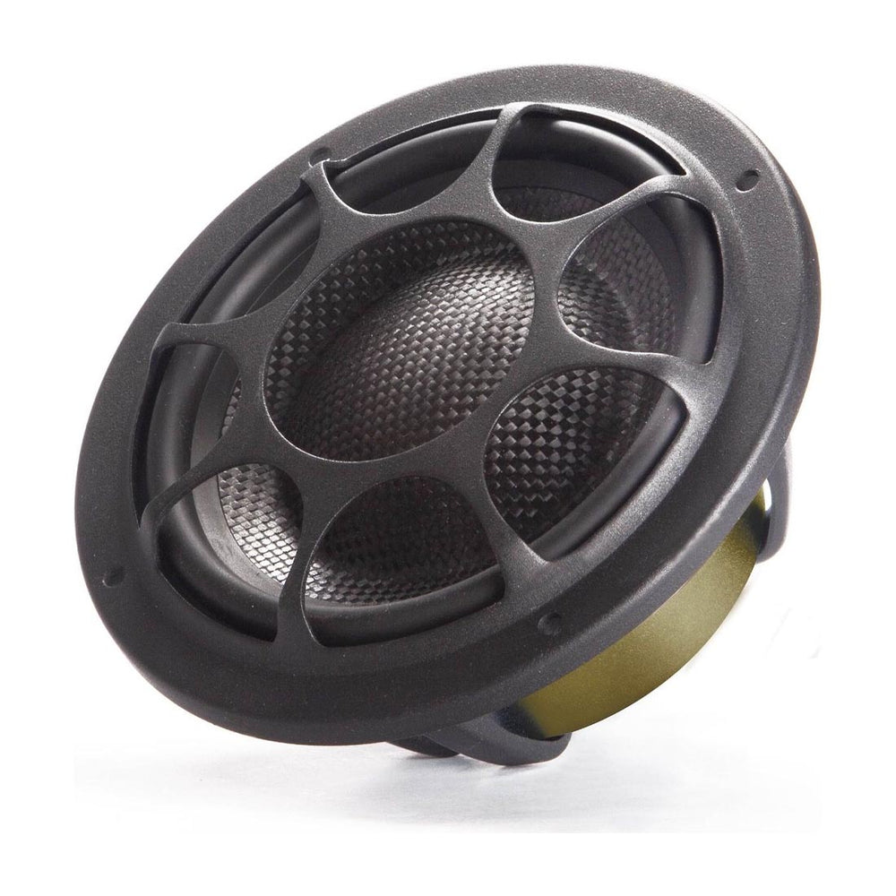 At just 5.25 inches, these woofers are small enough to fit into tight spots, but don’t let their size fool you. Thanks to the carbon fiber/Rohacell cone and butyl rubber surround, the Morel Elate Carbon MW5 delivers tight, controlled lows and crystal-clear mids that punch way above their weight. It’s like having a heavyweight boxer hiding inside a featherweight frame — all the muscle without the bulk.