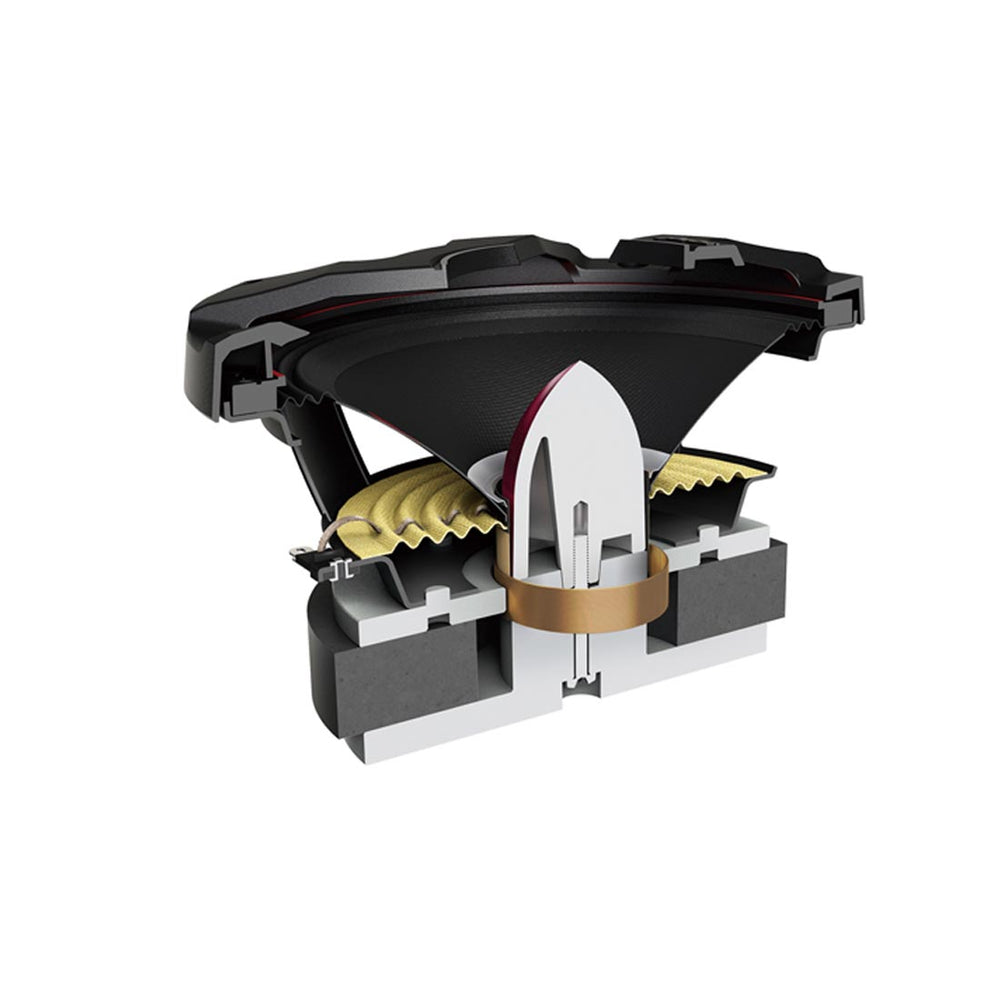 Pioneer has spared no effort in crafting these high-performance car speakers. The lightweight yet rigid pulp cone ensures excellent response and accuracy, allowing you to enjoy music in all its richness. The surround material, made from cloth with a corrugated design, facilitates precise cone movement while maintaining structural integrity. The stamped metal basket, housing the speaker components, ensures robustness and durability, capable of handling the demands of intense audio sessions. Additionally, the Ferrite magnet with a weight of 35.0 oz and the copper-clad aluminum voice coil wire contribute to the speaker's exceptional performance.