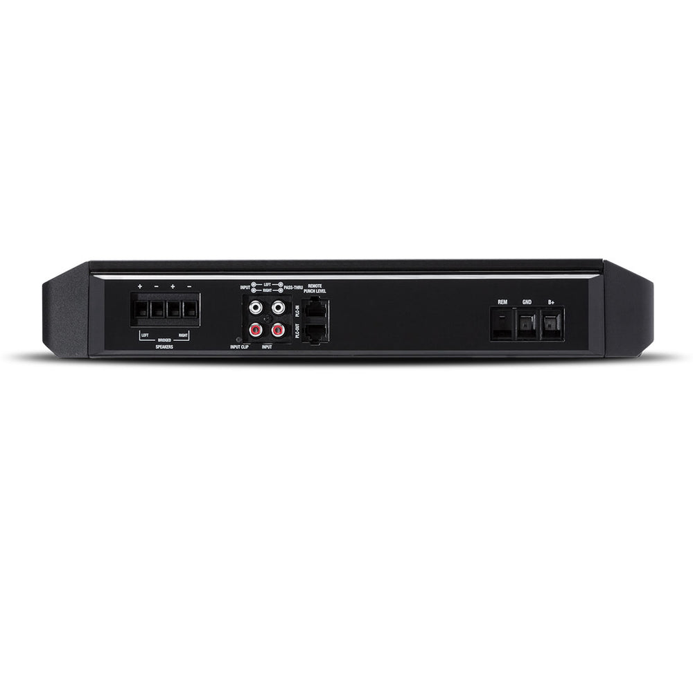 Rockford Fosgate's Punch P1000X2 amplifier sends 300 watts RMS to each of a pair of high-performance speakers or subs, filling your ride with plenty of loud, clean music. You can use the high-pass filter to keep the low bass out of your speakers so they perform more efficiently. You can also switch this versatile amp into mono mode to drive a sub with up to 1000 watts RMS, then use the built-in low-pass filter to send the correct bass frequencies to your sub. The Punch EQ2 features a bass and treble boost, in case you want to add a little boom and sizzle back into the mix.