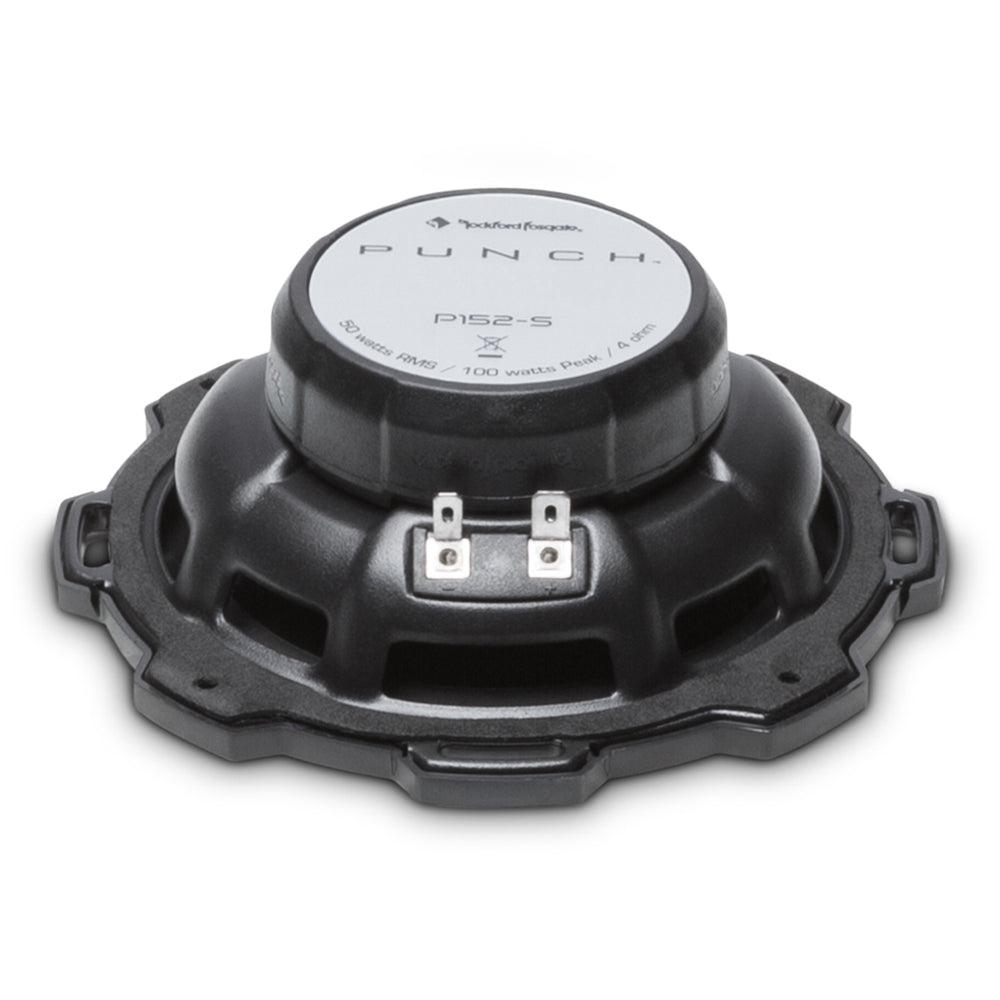 The Rockford Fosgate P152-S is designed as a high-grade replacement for your factory speakers. Each speaker features a responsive polypropylene cone and butyl rubber surround that'll stand up to hours of high-volume jams. Rockford Fosgate uses a new technique to attach the surround to the cone that yields up to 25% more cone area, for fuller sound and stronger performance. The dome tweeters provide clear, extended highs that can hold their own when the bass gets heavy.