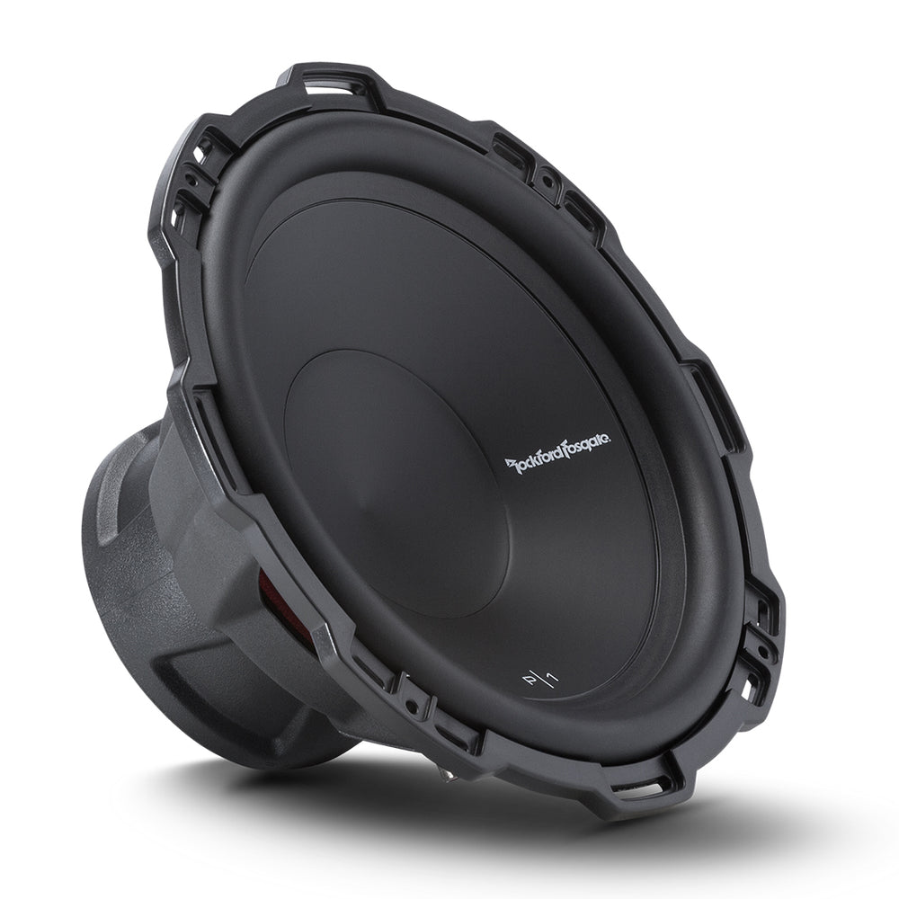Engineers designed the Rockford Fosgate P1S4-12 12" subwoofer to dish out the kind of powerful low end you crave in your ride. Its responsive paper cone is reinforced with the same Kevlar fibers used in bulletproof vests so you get the best of both worlds — warm bass that's exceptionally hard-hitting. Rockford Fosgate uses a new technique to attach the oversized rubber surround to the cone that increases available cone area up to 25%, so this sub can push more air for even bigger bass.