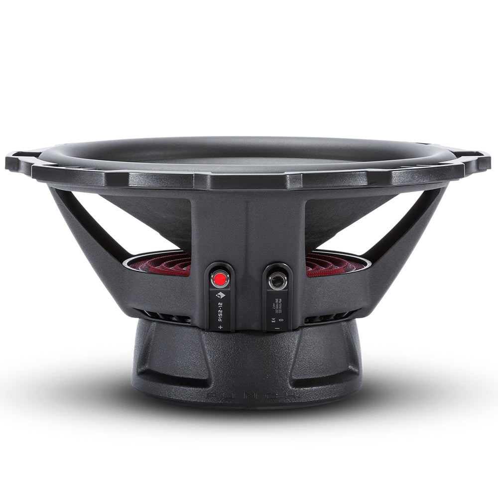 Rockford Fosgate P1S4-12 12” is the first in a family of famous “Punch” subwoofers for cars and trucks. The P1S4-12 features a 4-Ohm voice coil, 250 Watts RMS power handling, and can accommodate a grille insert using the included soft touch ABS trim ring. Kevlar fiber reinforced paper cones deliver bass impact you can feel, and our VAST technology in the Punch P1 woofer increases woofer surface cone area by up to 25%. Best in standard sealed and vented enclosures.