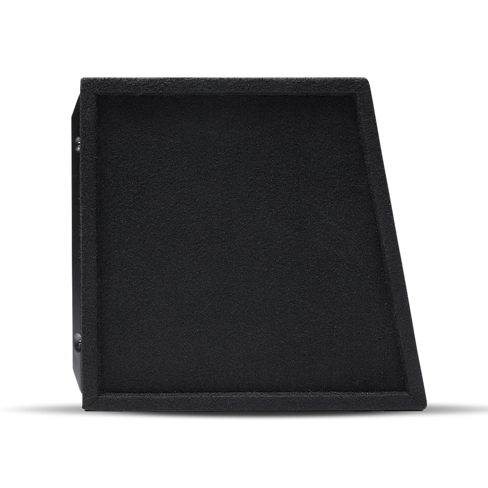 Rugged 5/8" medium-density fiberboard construction means this enclosure will hold strong for fat, heavy bass. Industrial-grade black carpet provides a clean, finished look, and protects your trunk from nicks and scratches. The spring terminals will accept bare wire, pin connectors, or banana plugs. This enclosure uses an advanced port design that promotes generous air movement while reducing distortion-causing port noise, so you hear louder, deeper bass. Add an amp and some wiring, and feel the thick low end this enclosure adds to your ride.