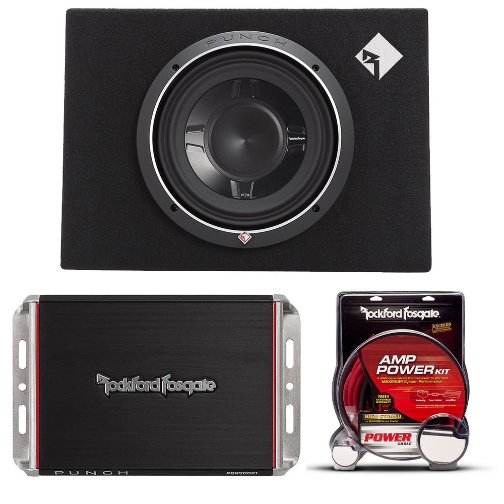 Rockford Fosgate P3S-1X10-BUNDLE 10" Shallow Loaded Enclosure | PBR300X1 Mono Amplifier | RFK8I Installation Kit
