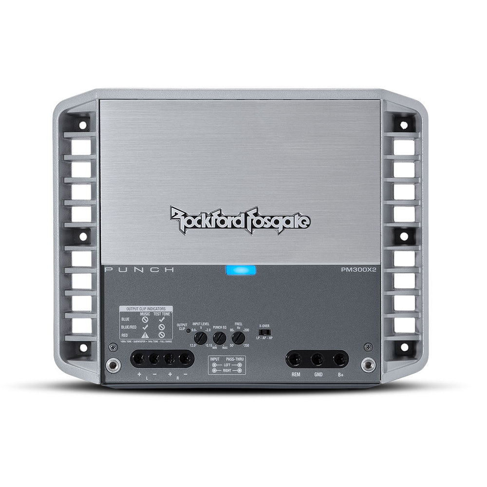 The PM300X2 2-channel amplifier from Rockford Fosgate is designed for marine, motorcycle, and power sport applications. A pair of coaxial speakers, a set of component speakers, or a subwoofer can all be driven by this tough, versatile amp.