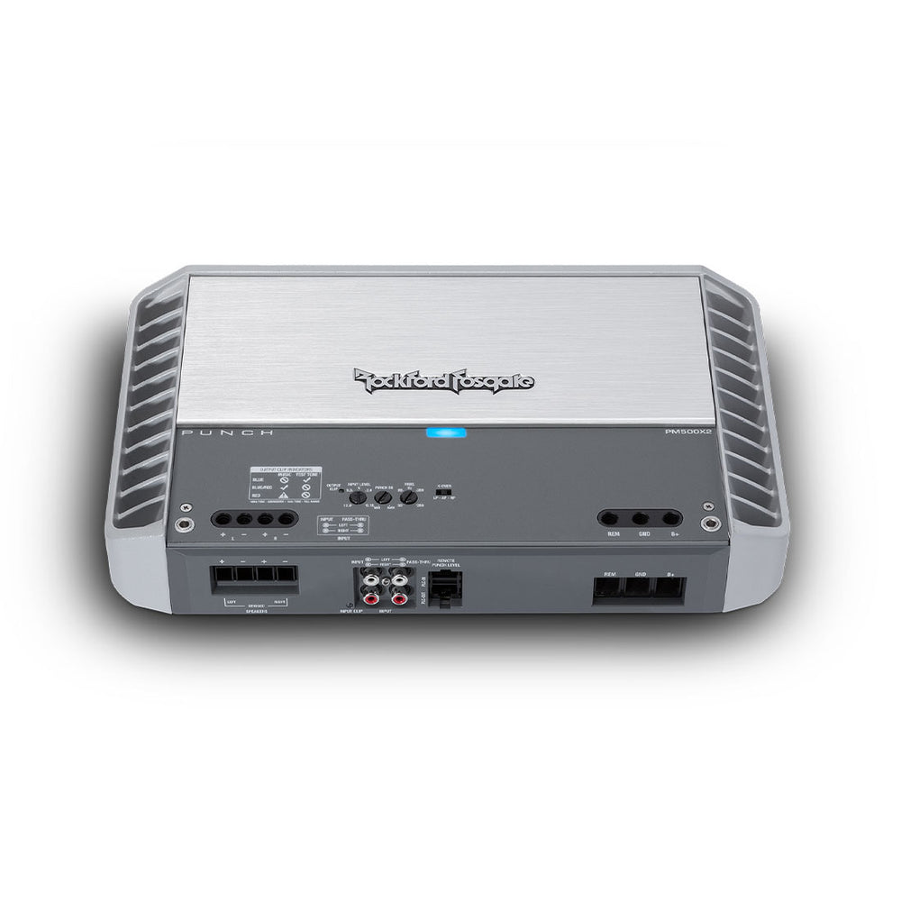 The PM500X2 2-channel amplifier from Rockford Fosgate is designed for marine, motorcycle, and power sports applications. This tough amp can power a pair of coaxial speakers, a set of component speakers, or a subwoofer or two
