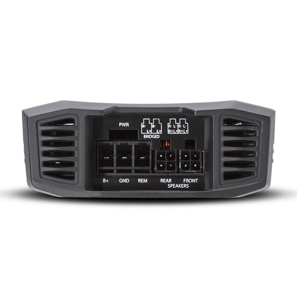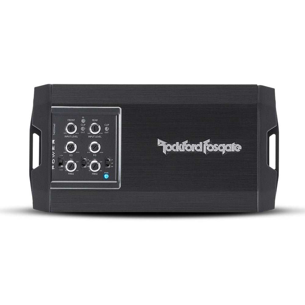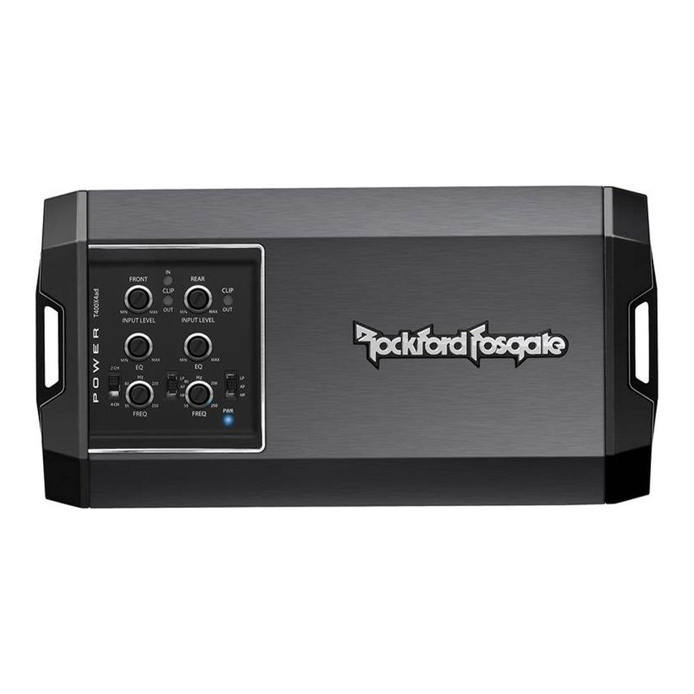 The Rockford Fosgate Power Series T400X4AD 4-channel amplifier can deliver up to 100 watts RMS to four separate speakers, or you can use it to power two 200-watt subwoofers. This tough little amp is kept cool by a dual-fan forced air cooling system, so it can play hard for a long time.