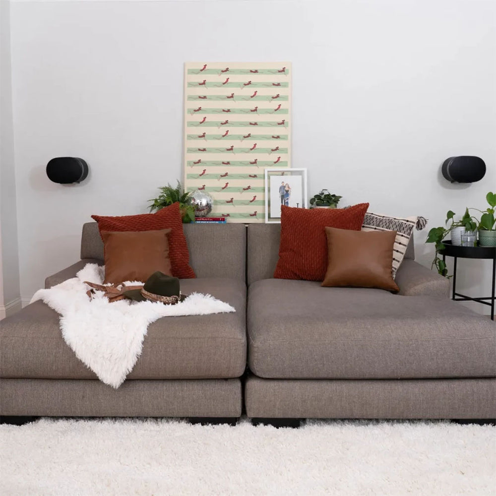 One of the standout features of the Sanus WSWME32-B2 is its sleek, minimalist design. The mount blends seamlessly behind your Sonos Era 300™ speakers, giving your setup a polished, high-end look. Available in both black and white, it complements the aesthetic of your speakers, adding to the overall elegance of your home audio system.