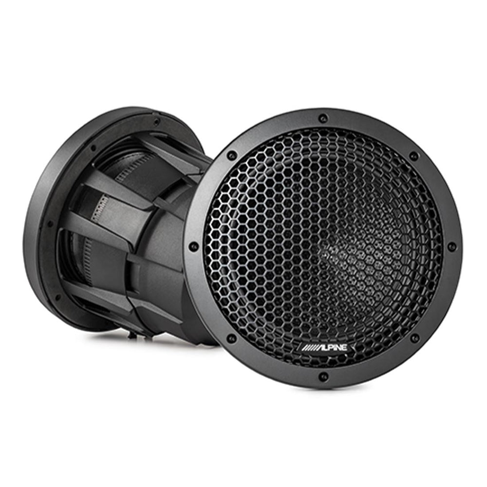The Alpine HDZ-W10 doesn’t just perform well; it looks great too. It features a cast aluminum frame and a premium aluminum trim ring that contribute to its sleek appearance while ensuring long-lasting durability. The subwoofer also comes with an open mesh style protective grille. This grille not only adds to the subwoofer’s robust design but also protects it from damage without compromising its stylish look.