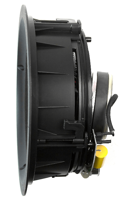 The Klipsch CDT-3800-C II stays inconspicuous with its SlimTrim™ grille. The visible frame size is reduced by 90% and grille depth is reduced by 80% over previous designs, for a nearly flush finish that blends in beautifully. The paintable aluminum, magnetic grille attaches securely with ease to virtually eliminate resonant distortion.