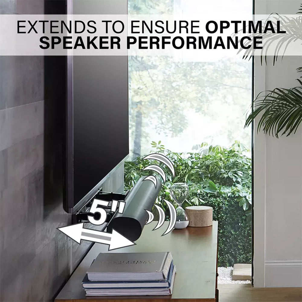 Ever notice how thick TVs can block soundbar mics or Atmos drivers? That’s where this mount’s magic comes in. It extends up to 5 inches from the wall, giving your Sonos Arc the space it needs to let those drivers breathe. The result? Sound that fills the room with zero compromise.