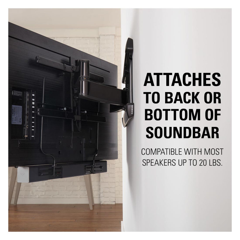 - Attaches to the back or bottom of the soundbar for compatibility with most soundbars up to 20 lbs.