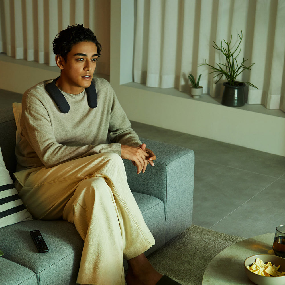Experience home theater like never before with the Sony HT-AN7 BRAVIA U Wearable TV Speaker. This innovative neckband speaker leverages Sony's 360 Spatial Sound technology to transport you directly into the heart of your favorite shows and movies. Designed for seamless integration with your compatible Sony BRAVIA TV, this speaker delivers thrilling Dolby Atmos® sound without disrupting your household.