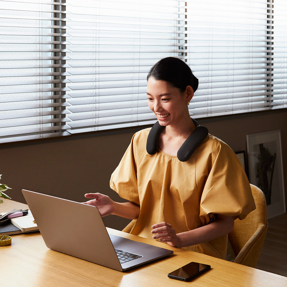 Designed with comfort in mind, the Sony HT-AN7 features an adjustable design for a comfortable fit during long listening sessions. Whether you are watching a movie or engaging in a lengthy phone call, the neckband speaker ensures comfort and convenience. The flexible design adapts to the set of your shoulders and the thickness of your neck, ensuring a secure fit even when you lean back and relax.