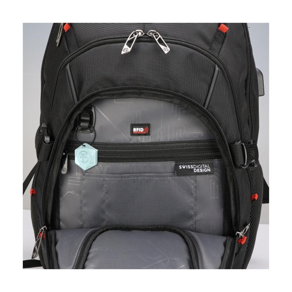 This Swiss Digital SD803BT02506-01 Vector backpack safeguards a 17-inch laptop while keeping phones charged, valuables secure, and your bag visible on crowded commutes. Lightweight yet feature-rich, it is built for students, professionals, and travelers who need organized, tech-ready storage.