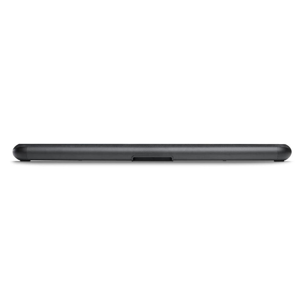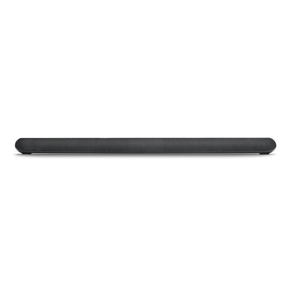 An extruded aluminum shell provides rigidity while keeping the profile to just 2.9 inches high on a shelf. The tonal weave fabric across the front softens the look, so the bar blends with modern or traditional décor. Touch-sensitive controls glow only when a hand approaches, maintaining a clean façade the rest of the time.