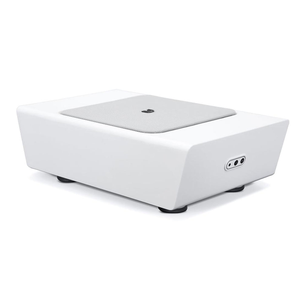 The subwoofer offers an analog RCA input in addition to local network connectivity through Wi-Fi or wired Ethernet.