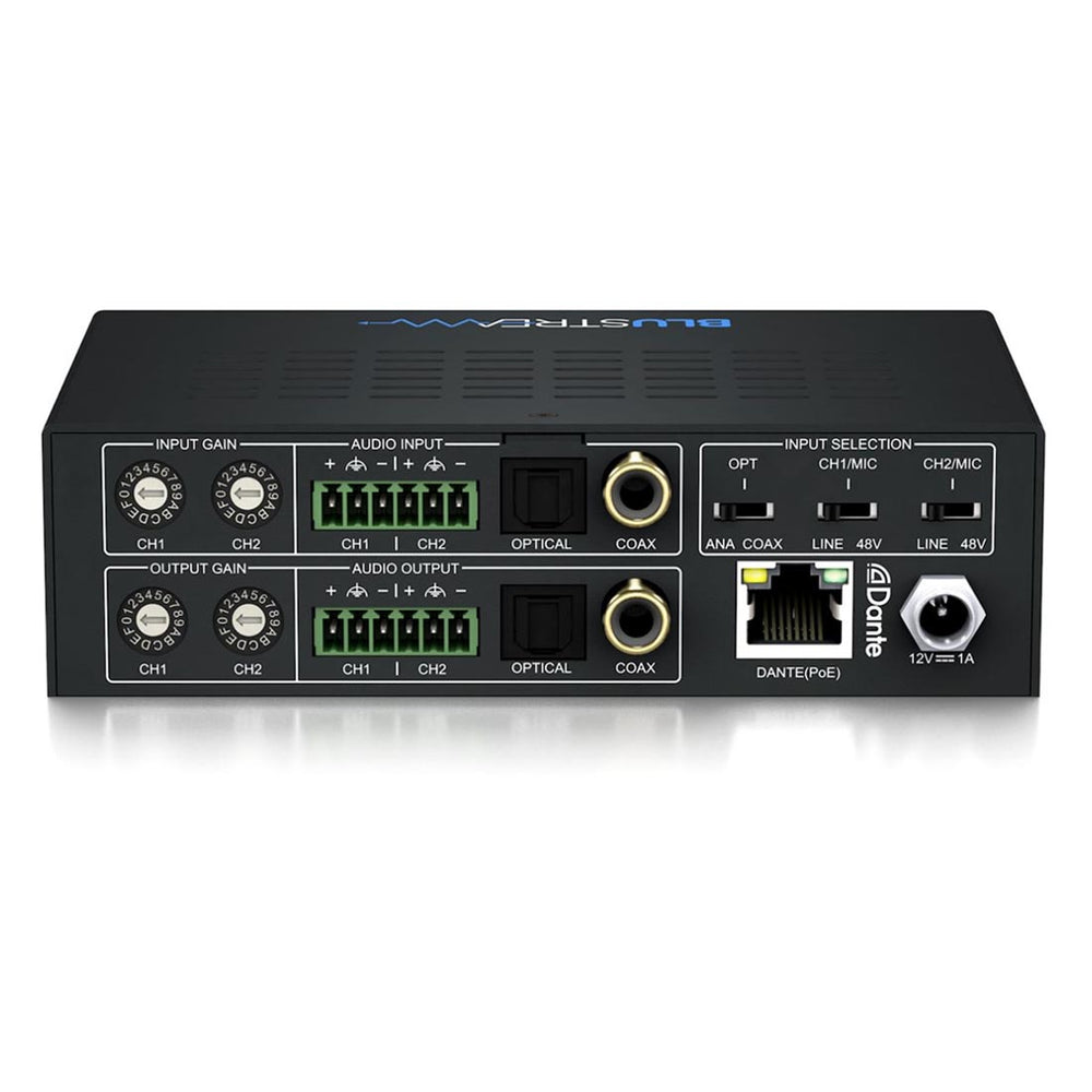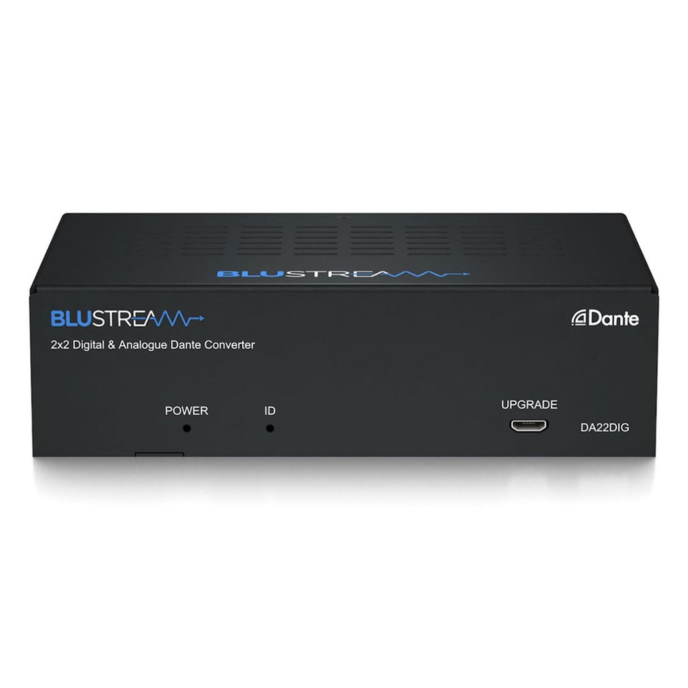The Blustream DA22DIG provides straightforward conversion for Dante-enabled systems.