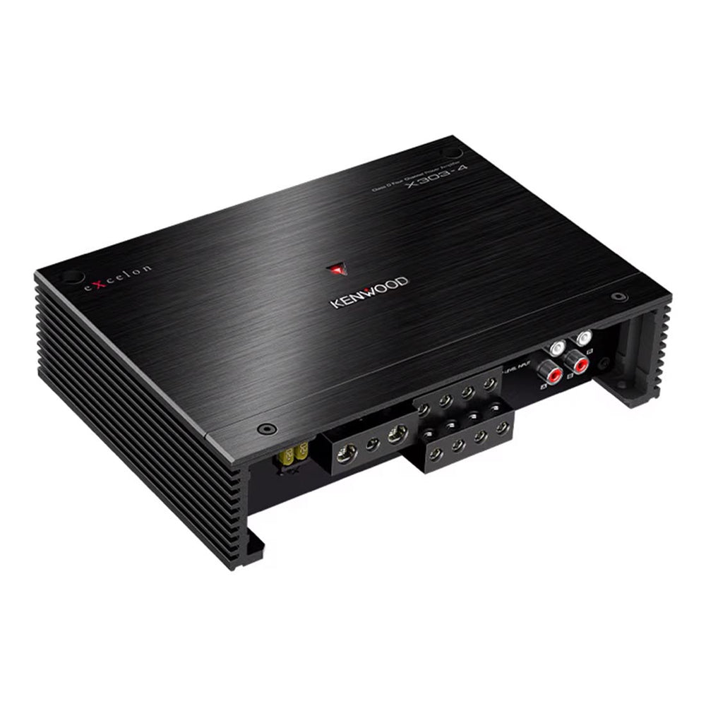 - What is the power output of the Kenwood eXcelon X303-4 amplifier? The Kenwood eXcelon X303-4 offers an RMS output of 50W x 4 at 4Ω and 75W x 4 at 2Ω, with a maximum power output of 600W.