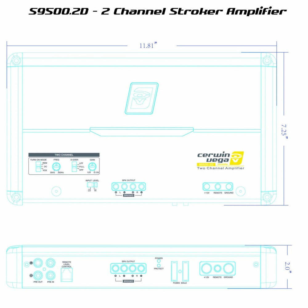 Cerwin Vega S9500.2D Stroker 500W RMS Class-D Digital 2 Channel Amplifier