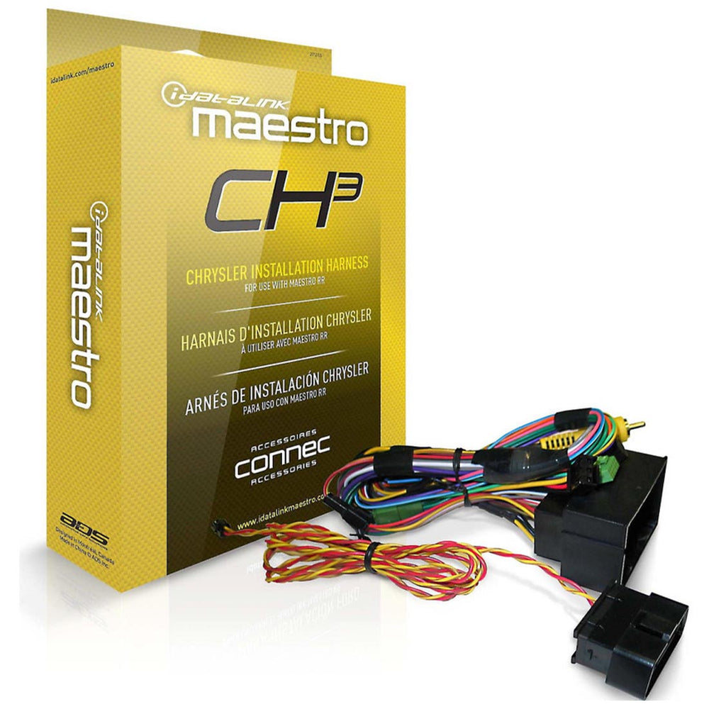 Connect a car stereo with iDatalink capability and retain steering wheel controls and factory amp in select Chrysler-made vehicles (also required: ADS-MRR or ADS-MRR2 module) Radio replacement T-harness for select Chrysler, Dodge and Jeep vehicles 2013 and up with 52-pin radio plug. Greatly simplifies the installation of the Maestro RR module.