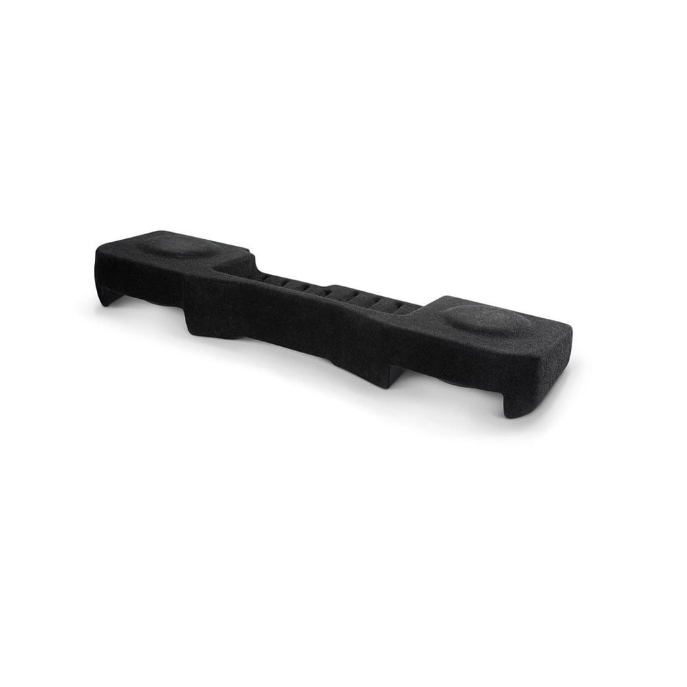 The Stealthbox® slips under the truck's rear seat and features two of our revolutionary 10TW3 thin-line subwoofers, giving you absolutely stellar sub-bass impact and quality. We even left a perfect spot in the middle of the enclosure for a clean, hidden amplifier installation!