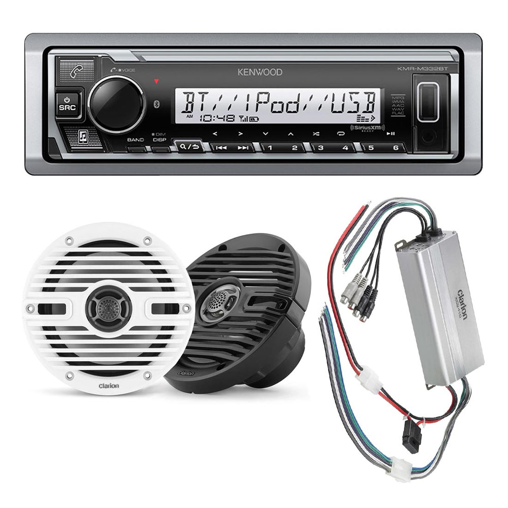 Kenwood KMR-M332BT Marine Digital Media Receiver | Clarion CMS-651 Marine Speakers | Clarion XC2410 Marine Amplifier - Bundle
