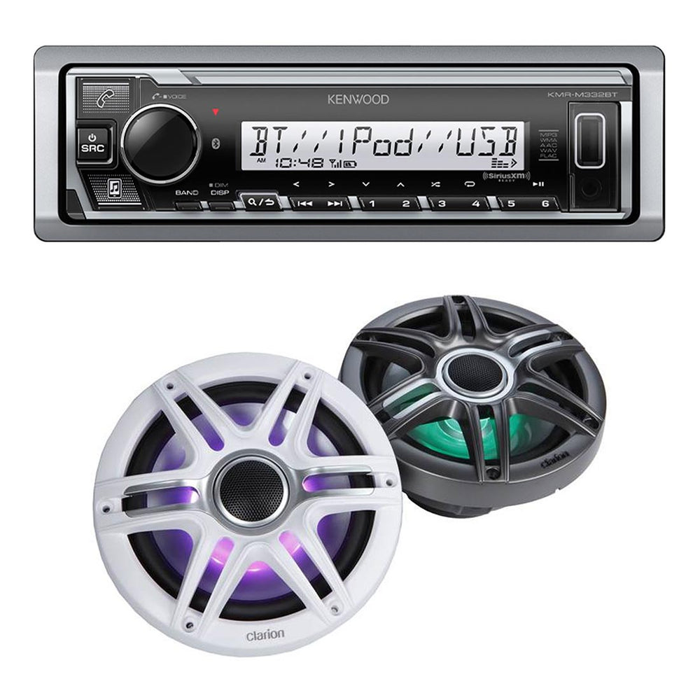 Kenwood KMR-M332BT Marine Digital Media Receiver | Clarion CMSP-771RGB-SWG Marine RGB Speakers with Sport Grilles - Bundle