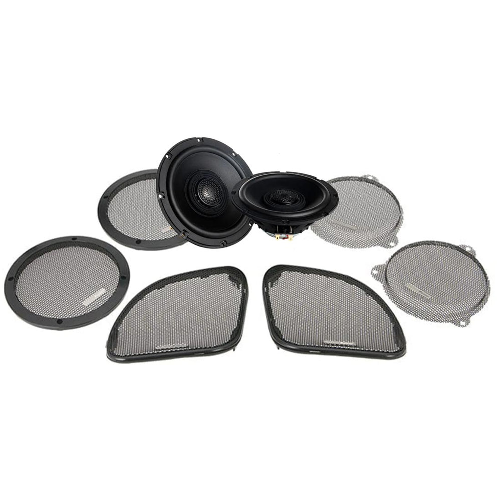 Precision Power understands the importance of easy installation and stylish customization. That's why the HD14.654 upgrade kit comes with special woofer grilles. These unique grilles simplify the sometimes complicated task of custom-mounting speakers on your Harley. With these grilles, you can achieve a sleek and efficient installation while adding a touch of personal style to your bike. Experience the pleasure of both exceptional sound quality and visual appeal with the Precision Power HD14.654 6.5" 4-Ohm Fairing Speakers Upgrade Kit. Ride in style and enjoy your favorite music like never before on your Harley-Davidson Touring Motorcycle.