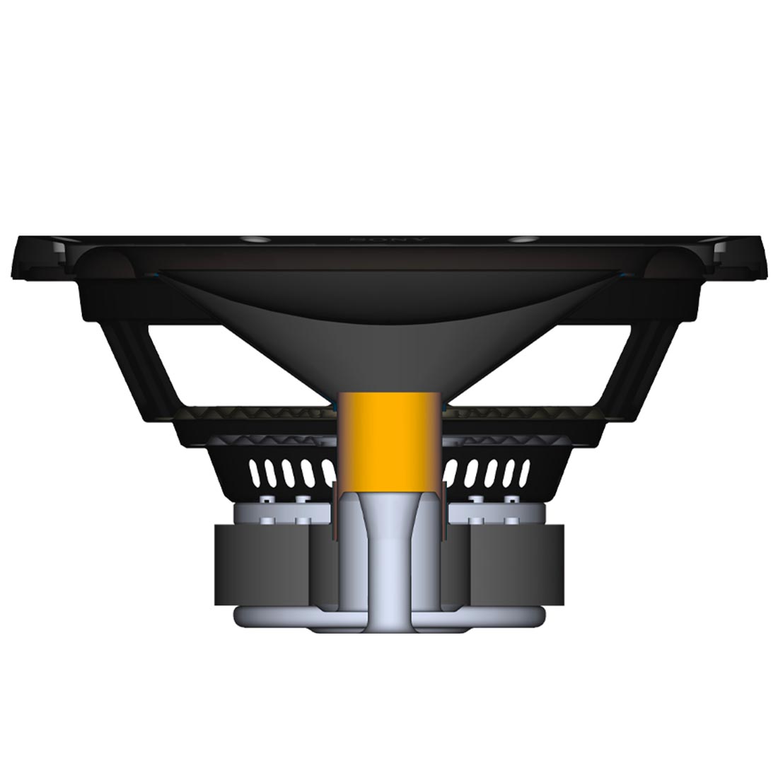 The acoustically optimized spider in the XS-W104GS allows for higher power handling and improved airflow. Its profile is designed to provide rapid and precise cushioning of the speaker cone, ensuring that the subwoofer operates at peak performance levels. What's more, to enhance signal integrity and prevent sound interference, the lead wire from the voice coil is sewn to the spider, reducing wire movement and resulting in even cleaner and more robust bass.
