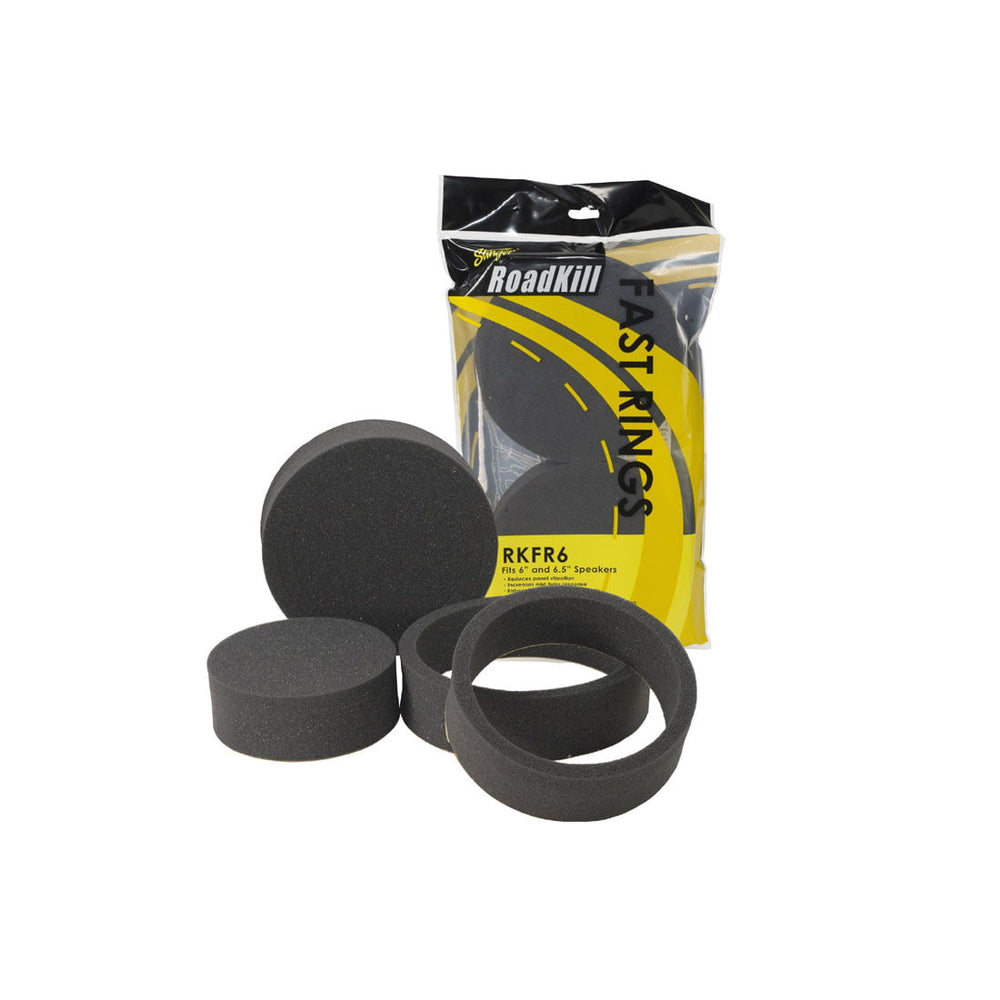 The Stinger RKFR6 Roadkill FAST Rings 6-piece foam baffle kit. Our 3-piece foam ring speaker enhancement system solves the problem of acoustically coupling aftermarket speakers to factory speaker openings. The RoadKill Fast Rings kit increases speaker output, improves the projection of the audio into the car cabin. Reducing unwanted rear reflections that can degrade the sound. The center pad mounts to the inside of the outer door panel, directly behind the speaker. This pad absorbs much of the speaker's back wave, helping prevent interference with the front wave you want to listen to, and reduces vibration.