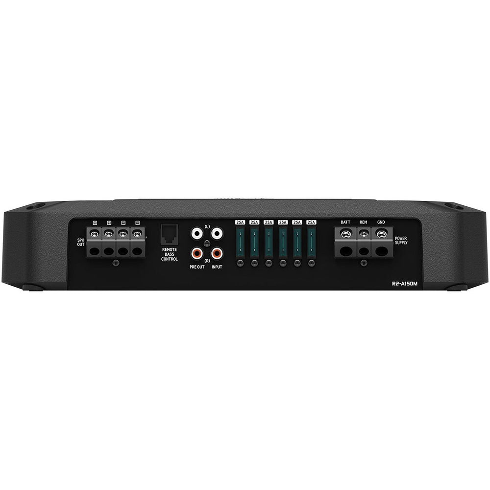 The R2-A150M's connection panel is a testament to its versatility. Offering a variable low-pass filter (50-400 Hz, 24 dB/octave), variable bass boost (0-12 dB at 50 Hz), and a variable subsonic filter (8-40 Hz, 24 dB/octave), this amplifier provides you with the tools you need to customize your audio output. The optional RUX-KNOB.2 wired remote level control adds an extra layer of convenience to your setup. With preamp and speaker-level inputs that can handle up to 10V, the R2-A150M ensures a seamless connection to your car audio system.