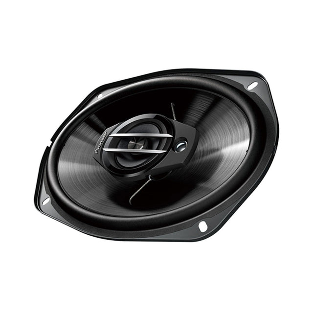 Pioneer TS-G6930F 6" x 9" 3-Way G-Series 400W Coaxial Speakers by Pioneer. TS-G6930F speakers are excellent choices to replace a bad set of factory 6 x 9" speakers. Their two-way design handles 400W max. Power (45W nominal) and features Pioneer’s extremely strong and lightweight Injected Molded Polypropylene (IMPP) Composite Cone Woofer for improved sensitivity and reduced distortion. The conex damper delivers higher power handling and deeper bass, and the 2" Cone midrange and 3/8" Dome tweeter reproduces highs with great performance and musicality.