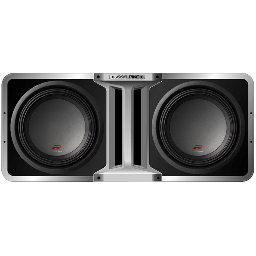 Unique to Alpine, the subwoofer 10-inch and 12-inch enclosures are available as a single or “linked” format with an optional mounting bracket. This innovative design allows the sound consumer the option to easily add more bass to their system. The optional mounting bracket (sold separately) is available in a 10-inch KTX-H10 or 12-inch KTX-H12 solution that mounts to the face of the subwoofer and links for a sturdy, dual-subwoofer enclosure. The silver enclosure trim matches the steel bracketing and Halo display trim for a synergized look.