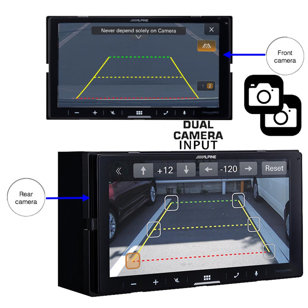 Backing into a tight parking spot just got simpler. With two camera inputs, the Alpine ILX-W770 lets you connect front and rear cameras. Switching between views is a breeze, giving you a better perspective on your surroundings and boosting your confidence when parking or navigating busy streets.