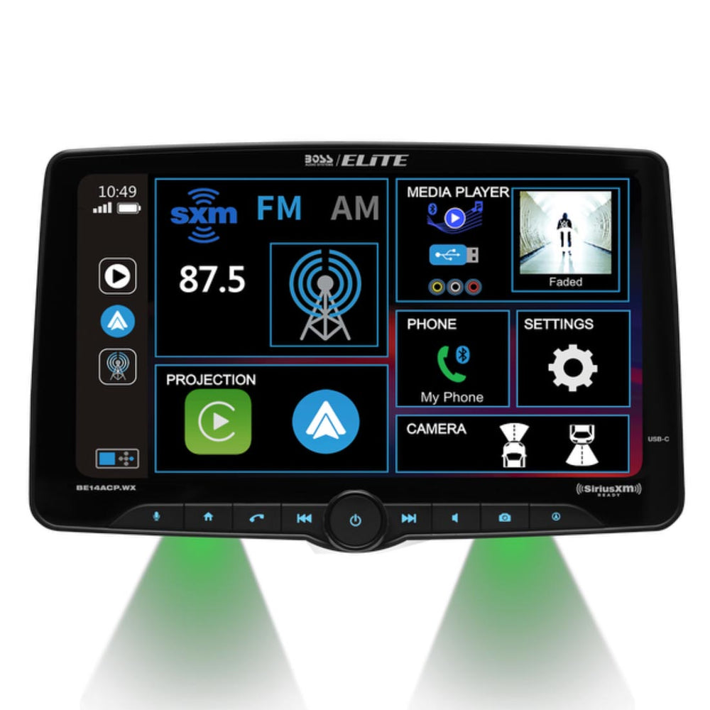 The Boss Audio Elite BE14ACP.WX is a powerhouse multimedia receiver that offers a seamless, state-of-the-art experience for drivers looking to upgrade their vehicle's infotainment system. With a massive 14" touchscreen, compatibility with both Apple CarPlay and Android Auto, and a host of premium features, this digital receiver is designed to transform your driving experience. Whether you're a music enthusiast, a frequent traveler, or simply want a safer way to stay connected on the road, the BE14ACP.WX has everything you need.