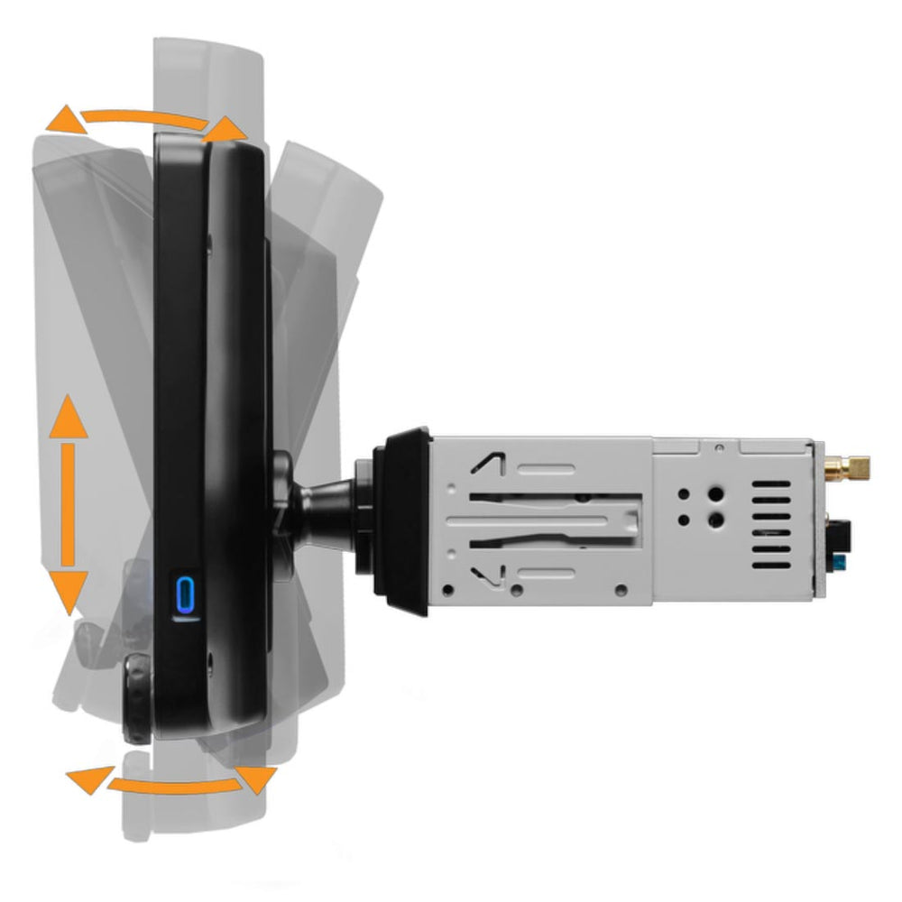 You’ll also find front and rear camera inputs, as well as an A/V input for connecting additional video sources. The BE14ACP.WX is compatible with audio output from a range of devices, including iPhones, smartphones, and MP3 players, ensuring you can always enjoy your favorite tunes.