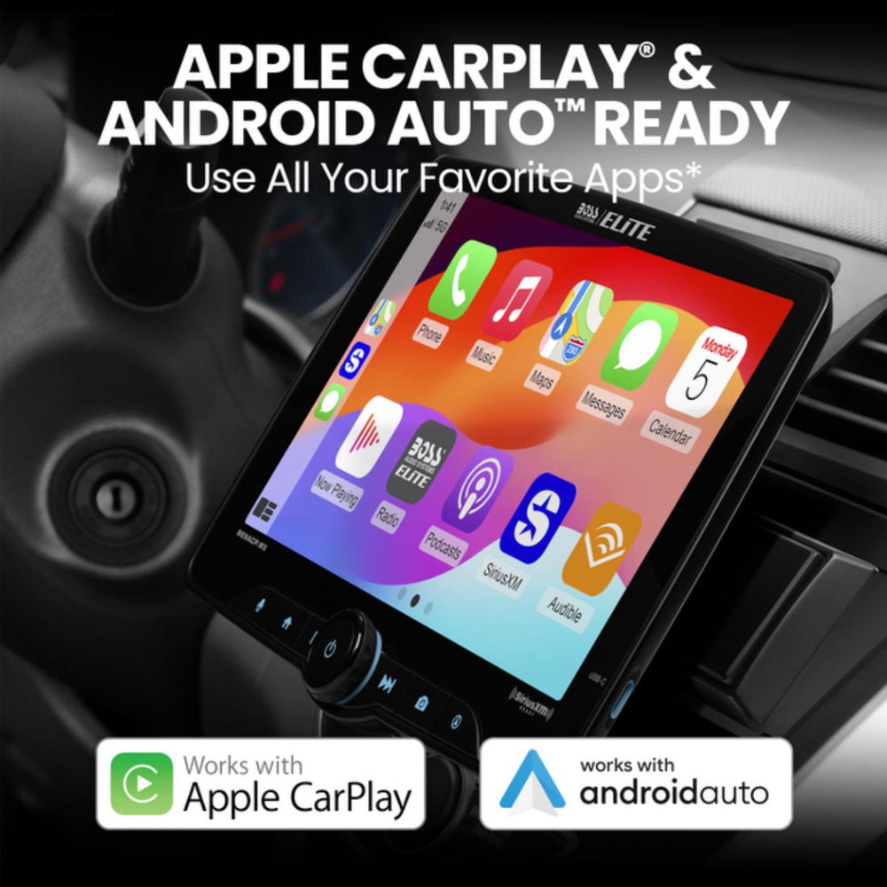 Does the Boss Audio Elite BE9ACP.WXC support wireless CarPlay and Android Auto? Yes, the system supports both wired and wireless versions of Apple CarPlay and Android Auto for seamless smartphone integration.