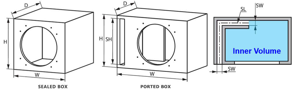- Ported Enclosure Applications: Kenwood suggests a ported enclosure volume of 1.5 cubic feet (1.2 to 2 cubic feet is acceptable) with a 12¾" wide x 1⅜" tall x 29" long slot port. Ported enclosures generally provide better overall efficiency compared to sealed ones, making them ideal for use with smaller amplifiers, delivering more bass output for the power used. However, this efficiency might come at the expense of extremely low-frequency output.